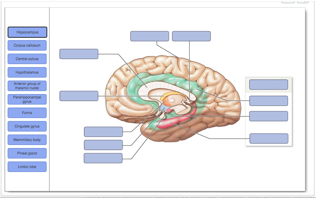 Reset Help Cingulate gyrus Pineal and mielobe Forni Hypothalamus Central sulcus Marmiary body Hippocampus Corpus callosum. The Spinal Cord and Spinal Meninges. Brain structures and their functions Art-labeling Activity.